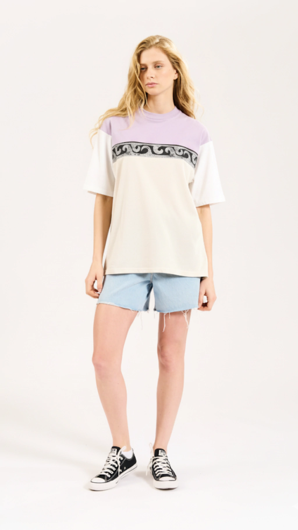La remera Reverse combina sus estampas, con diseños creativos con un estilo sencillo. Desde motivos abstractos hasta logos emblemáticos, cada diseño aporta un toque único. Su calce relajado, cuello redondo y mangas cortas la hacen perfecta para el uso diario, brindando comodidad sin perder actitud. Pertenece a la linea "The Wave Haze" donde el mar se funde con el cielo, una neblina ondulante te envuelve en una paleta fresca y serena, con suaves tonos de lila que se intensifican al nadar, mezclándose con nuevos verdes profundos. Estampados gráficos audaces se combinan con conjuntos tejidos, y se mezclan con la esencia romántica de pequeñas flores en vestidos suaves y vaporosos. Baby tees con divertidos gráficos se combinan con prendas esenciales de denim nuestros calces nuevos y nuestros favoritos. Ofrecemos una colección pensada para el cambio de estación y la neblina de las olas, para el amanecer temprano o la tarde tardía, donde los pliegues plateados del océano se encuentran con el cielo lavado y difuso.